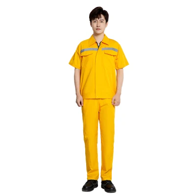 QIANYIYANG/千以扬 夏季短袖工作服套装 X003D 160码 浅黄色 含上衣×1+裤子×1 1套