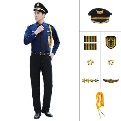 QIANYIYANG/千以扬 春秋款长袖形象岗保安衬衣制服 SJ-2030-3 2XL 藏蓝色上衣×1+黑色裤子×1+帽子×1+绶带×1+领花×2+肩章×2+胸章×2+领带×1 1套